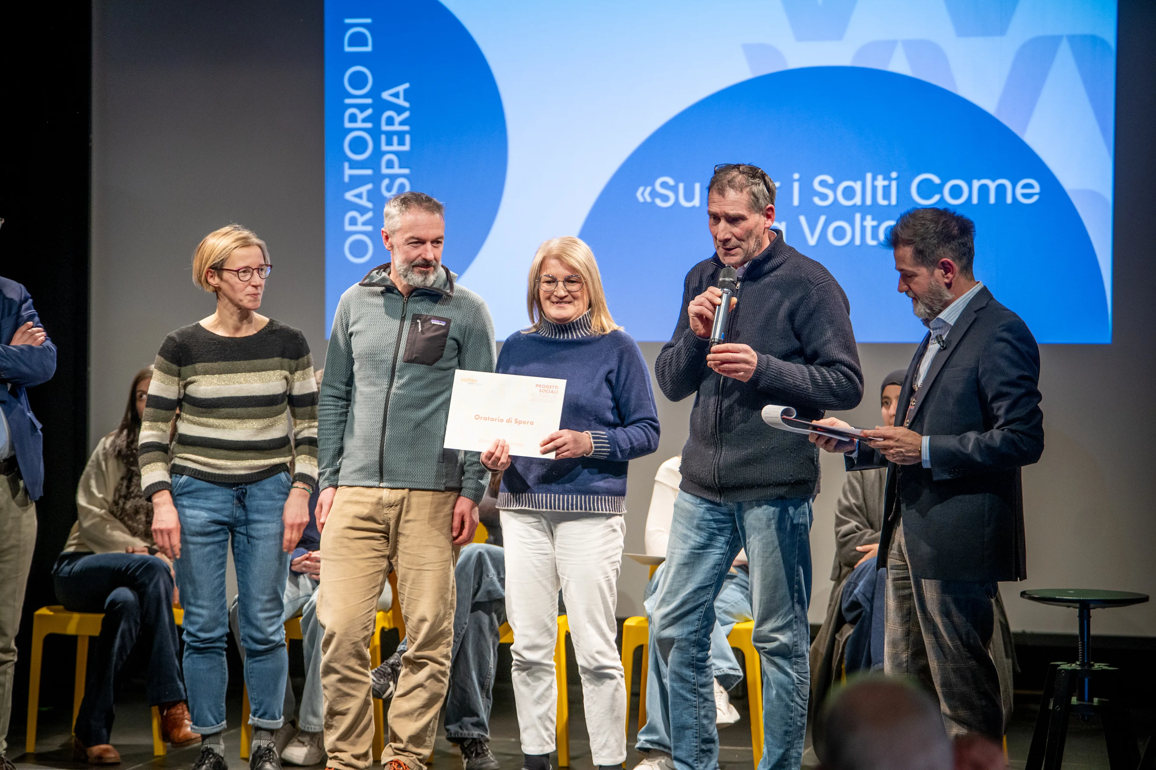 La serata è poi proseguita con la presentazione dei progetti finanziati da Fondazione Valtes all’interno della categoria Gold; si tratta di progetti di più ampio respiro, con orizzonte pluriennale e che sono riusciti a coinvolgere una partnership importante.