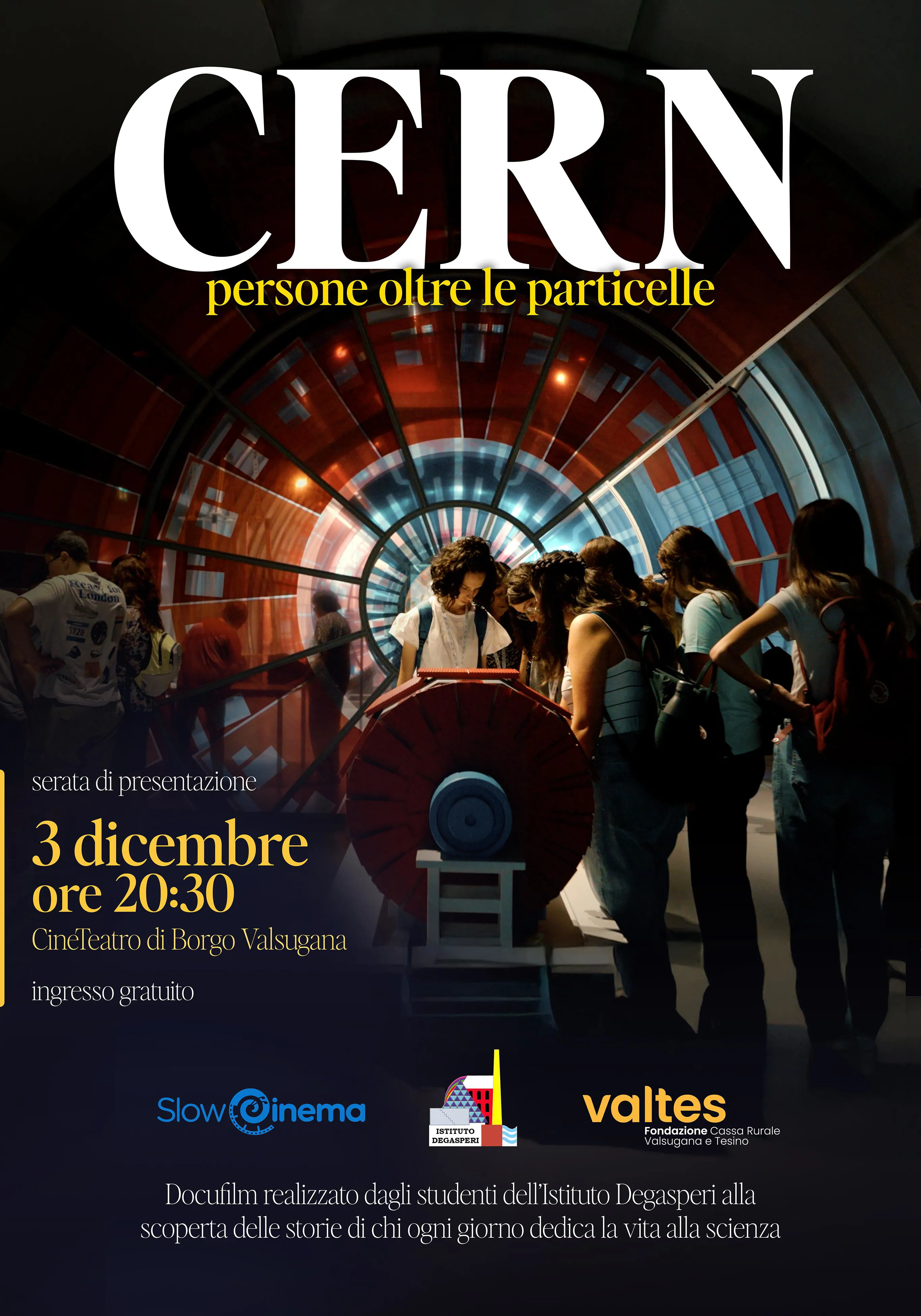 L’Istituto Alcide Degasperi e Fondazione Valtes sono orgogliosi di annunciare la prima proiezione pubblica del docufilm CERN – Persone oltre le particelle, che si terrà mercoledì 3 dicembre, alle ore 20:30, presso il CineTeatro di Borgo Valsugana.